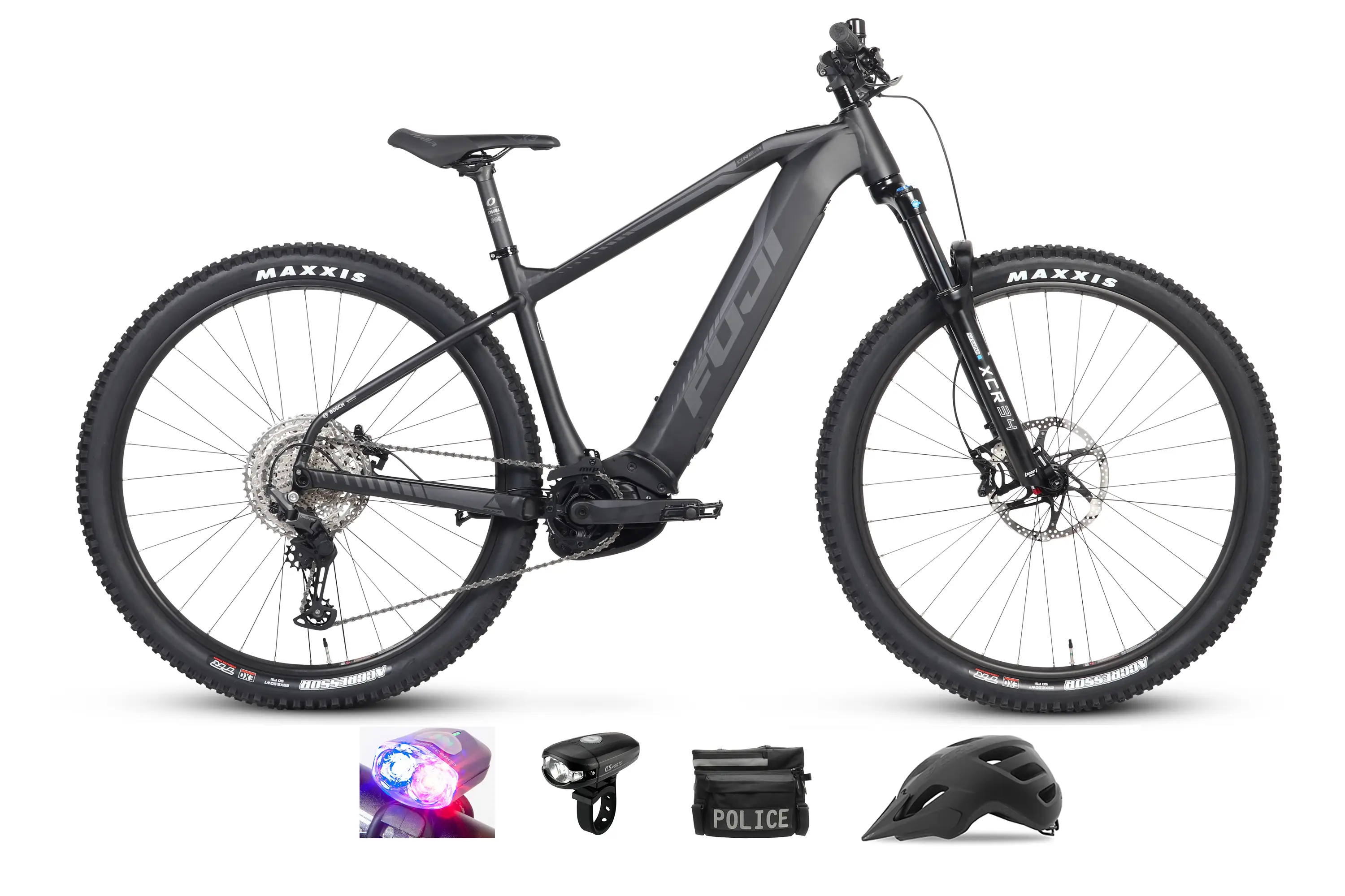 Fuji Ambient EVO 29 1.3 LE Police E-Bike - Mountain Bike Combo Package with Bike, Rack, Lights, Bag and Helmet